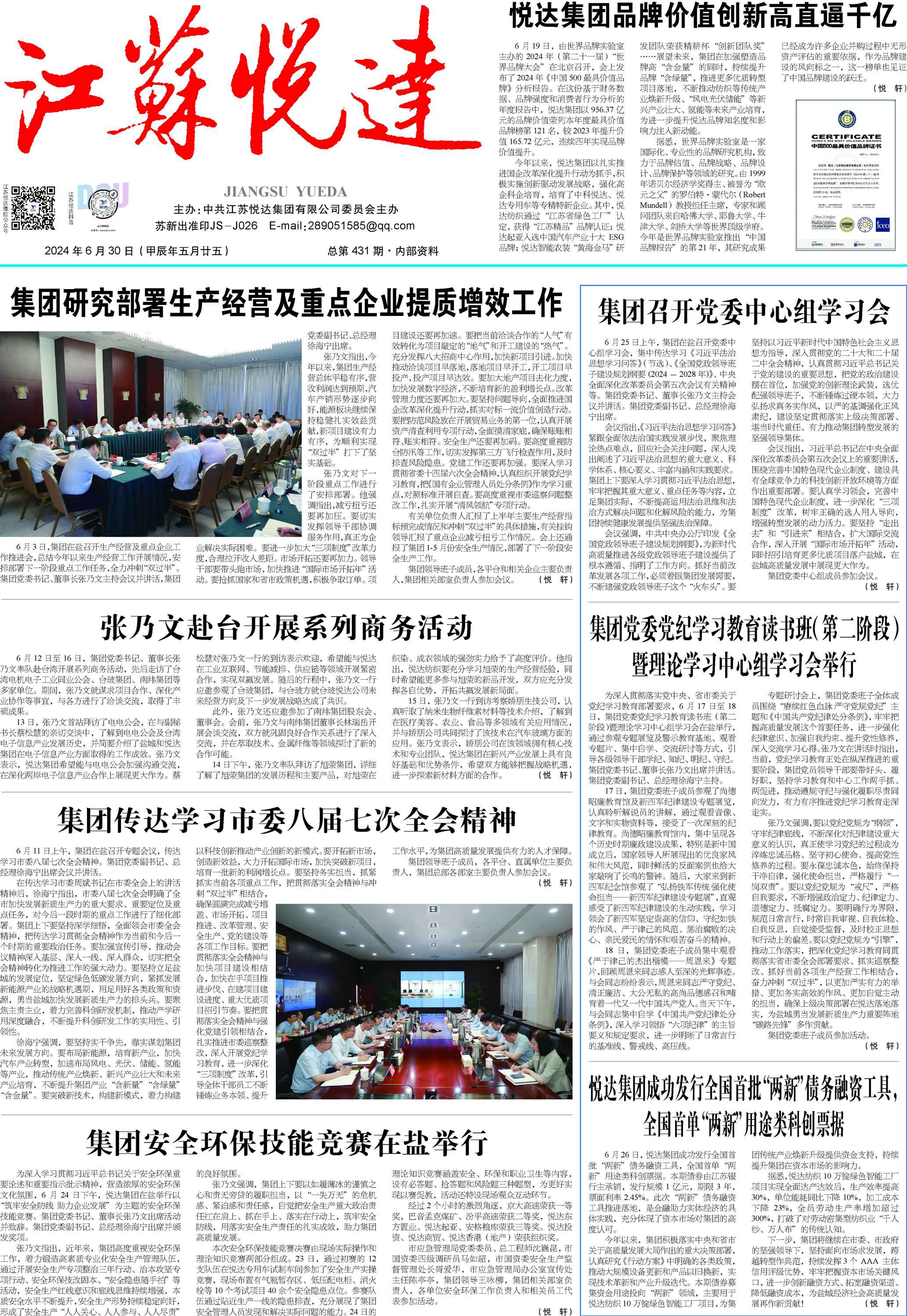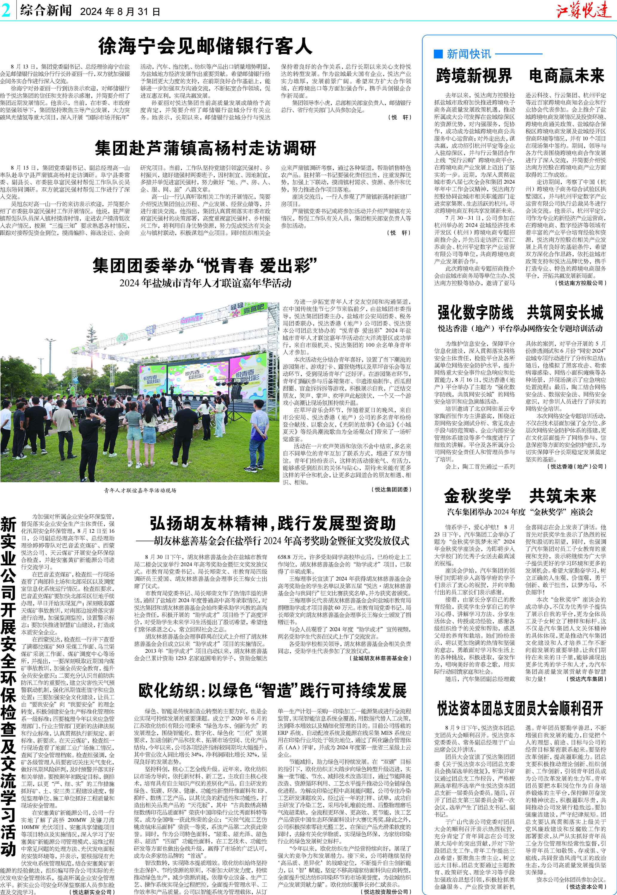 江蘇悅達集團有限公司創(chuàng)立于1979年,創(chuàng)業(yè)40多年來,始終堅持服務鹽城經(jīng)濟社會發(fā)展不動搖,始終堅守實體經(jīng)濟,成為全省重點國有骨干企業(yè)。榮獲“全國先進基層黨組織”“中華慈善獎”“為改革開放作出突出貢獻的先進集體”等榮譽稱號。